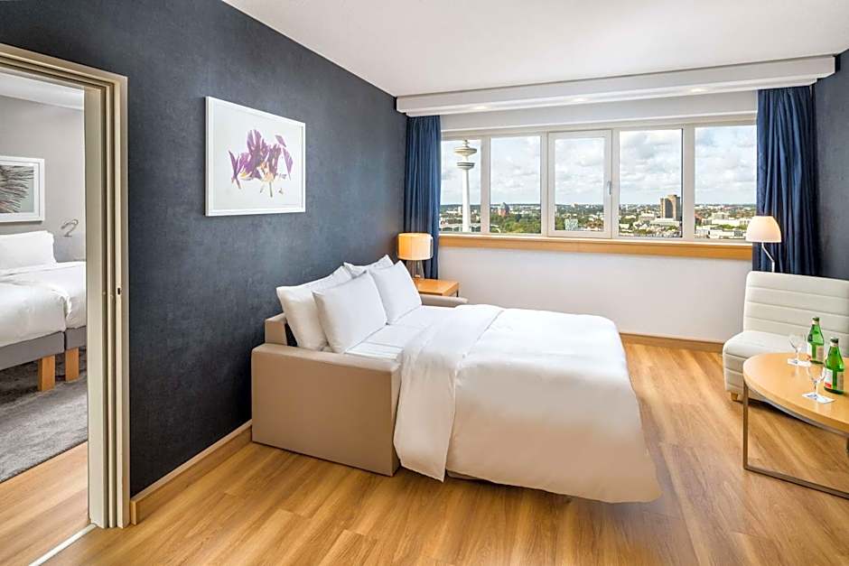 This suite with city views features a living room with a flat-screen TV, a mini-bar and a Nespresso® coffee maker. Also included are free WiFi, a daily newspaper, and an private bathroom with bathrobe and slippers. It is possible to provide a sofa bed.